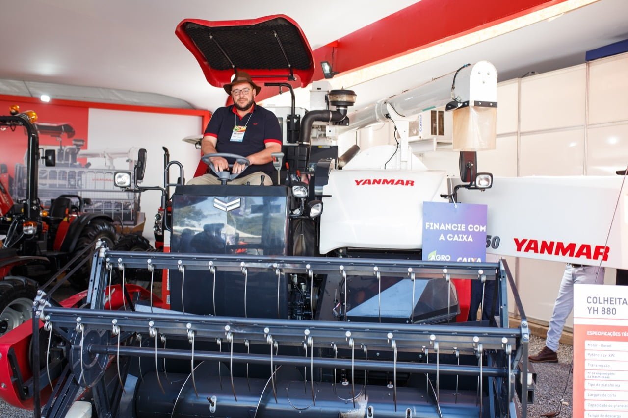 A empresa Yanmar trouxe para a Expocafé sua linha 2022. O destaque foi a Colheitadeira YH880 de tamanho compacto que possibilita a colheita nas ruas do café de culturas consorciadas, como milho, feijão e soja. “Nossos maquinários são voltados para o cultivo adensado, muito comum no Japão e cada vez mais adotado no Brasil”, explica o gerente comercial, Fernando Figueiredo, que comentou o aspecto qualitativo do público desta edição.