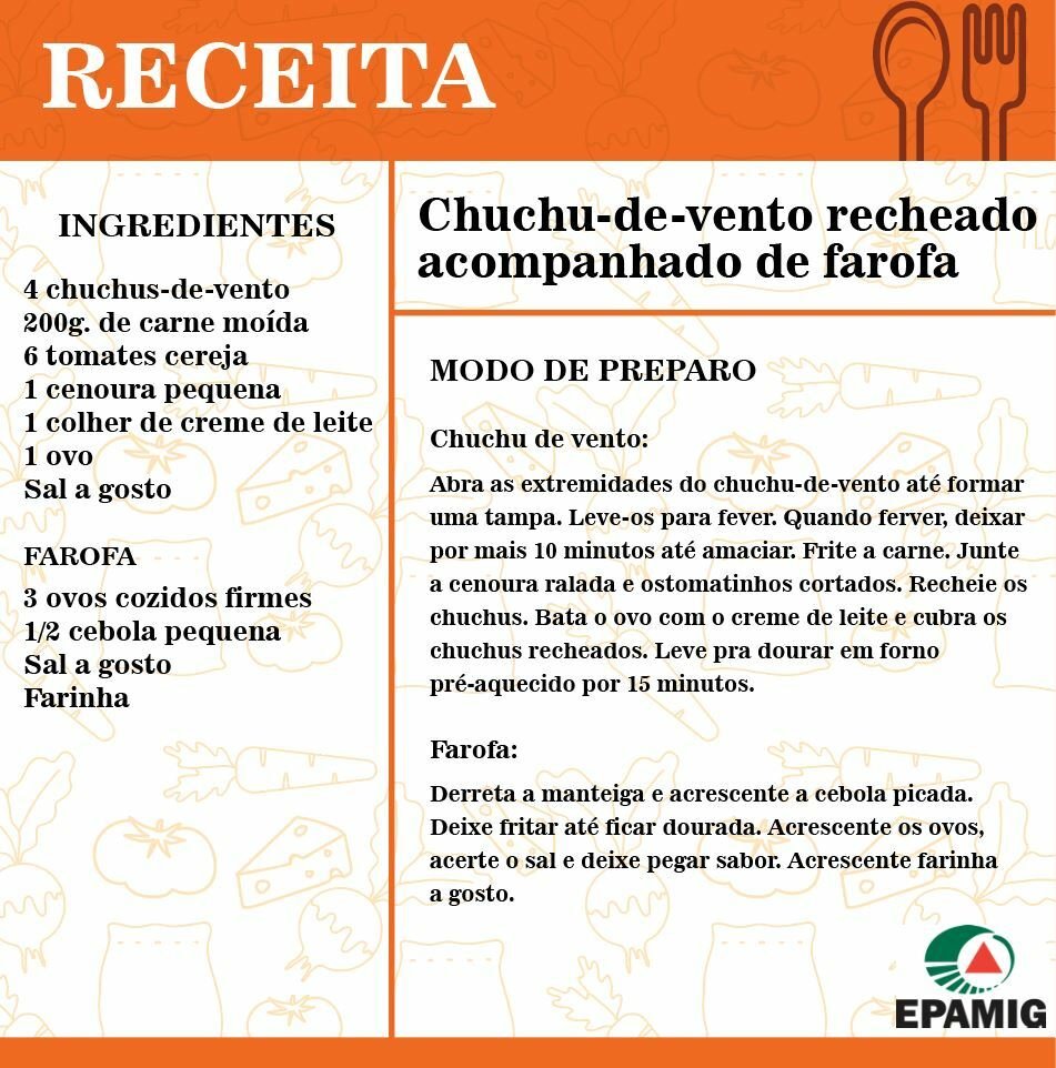 O chuchu-de-vento é o fruto de uma planta trepadeira de nome científico “Cyclanthera pedata”, originária da América do Sul. Em Minas Gerais, a Empresa de Pesquisa Agropecuária do estado (EPAMIG) atua na pesquisa e no resgate de saberes e histórias de hortaliças não convencionais como o chuchu-de-vento. Além do uso do fruto como alimento, a planta contém propriedades medicinais purgativas, anti-inflamatórias, hipoglicemiantes e redutoras do nível de colesterol.
