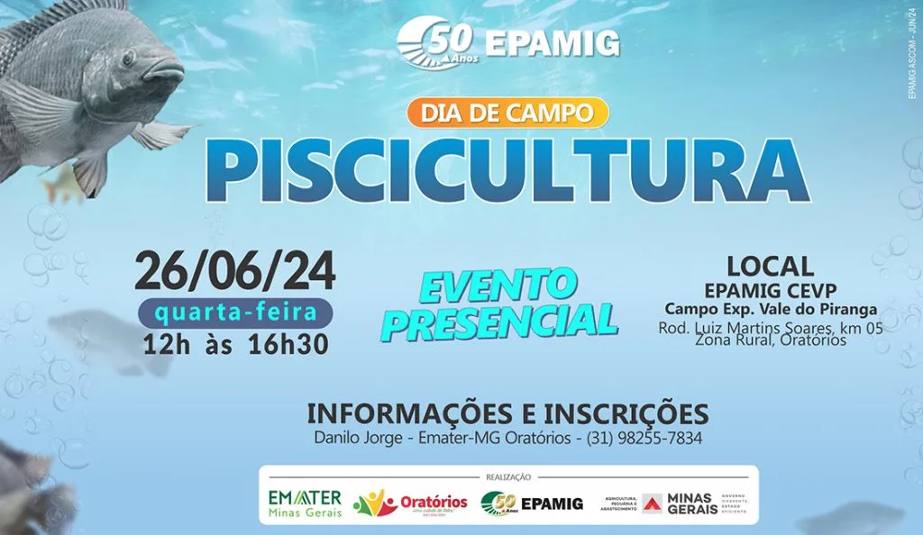 Dia de Campo, na próxima quarta-feira, vai orientar interessados na atividade (Belo Horizonte – 24/6/2024) A Empresa de Pesquisa Agropecuária de Minas Gerais (EPAMIG) promove na próxima quarta-feira, 26 de junho, em Oratórios- MG, um dia de campo sobre piscicultura. O evento, que acontece a partir das 12h, no Campo Experimental Vale do Piranga, vai […]
