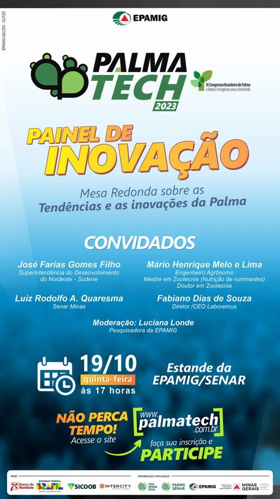 Painel de Inovação acontece na próxima quinta-feira, 19 de outubro (Belo Horizonte – 16/10/2023) O Palmatech 2023 acontece entre os dias 19 e 21 de outubro, em Montes Claros (MG). Entre as atrações do evento, o Painel de Inovação vai discutir empreendedorismo e oportunidades na cadeia de negócios da Palma Forrageira. A Mesa Redonda, que […]