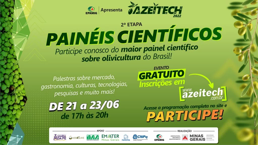 Evento promovido pela EPAMIG vai discutir a produção e o consumo de azeites e azeitonas de mesa (Belo Horizonte – 20/6/2022) A Empresa de Pesquisa Agropecuária de Minas Gerais (EPAMIG) promove nesta semana, de terça-feira (21) a quinta-feira (23 de junho) a programação virtual do 2º Azeitech. Nesta fase, o evento, iniciado no dia 25 […]
