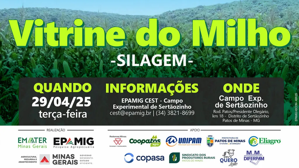 EPAMIG promove 15º edição da Vitrine do Milho, em Patos de Minas Evento visa o alinhamento e a atualização dos conhecimentos sobre silagem junto aos produtores. (16/04/2025) A Empresa de Pesquisa Agropecuária de Minas Gerais (EPAMIG) promove, na próxima terça-feira, 29 de abril, a 15º edição da Vitrine do Milho. O evento será realizado […]