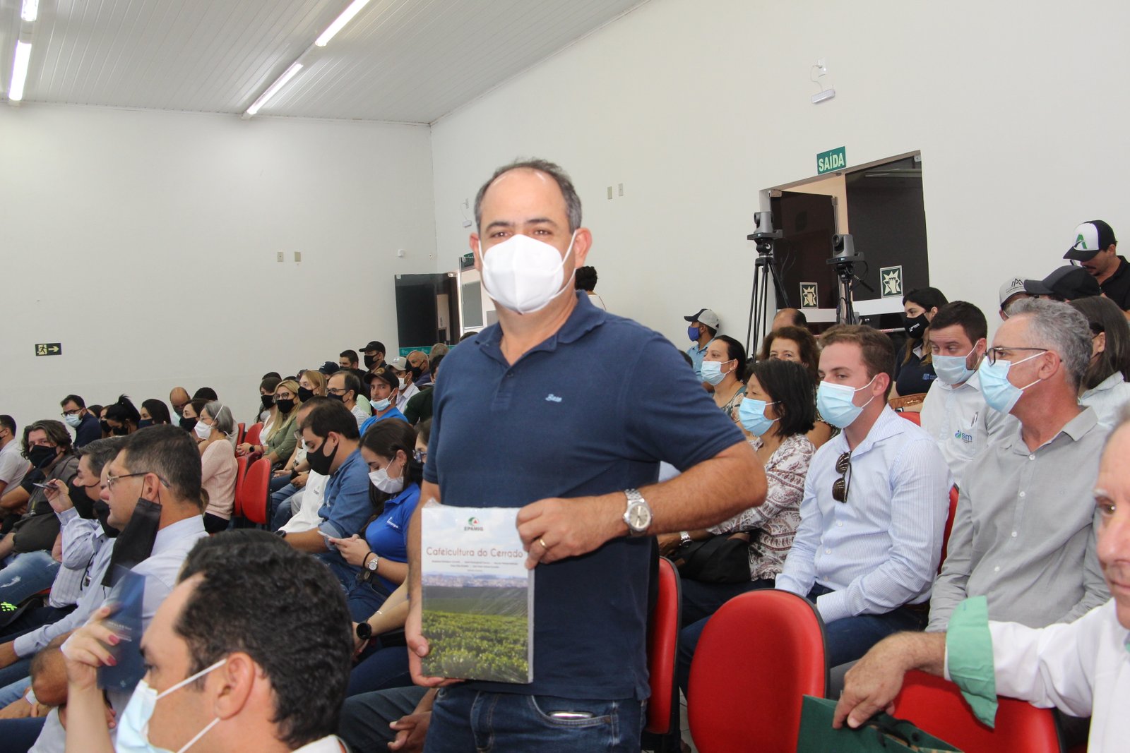 (Patrocínio – 26/11/2021) A Empresa de Pesquisa Agropecuária de Minas Gerais (EPAMIG), em parceria com a Federação dos Cafeicultores e com a Fundação do Desenvolvimento do Cerrado Mineiro (Fundaccer), realizou na quinta-feira, 25 de novembro, a 6ª edição do Encontro de Inovação e Tecnologia para a Cafeicultura do Cerrado Mineiro. Na ocasião, além das atividades presenciais e da apresentação dos resultados colheita da terceira safra do projeto Unidades Demonstrativas de Cultivares de Café, conduzido pelas instituições, aconteceu o lançamento oficial do livro “Cafeicultura do Cerrado“.