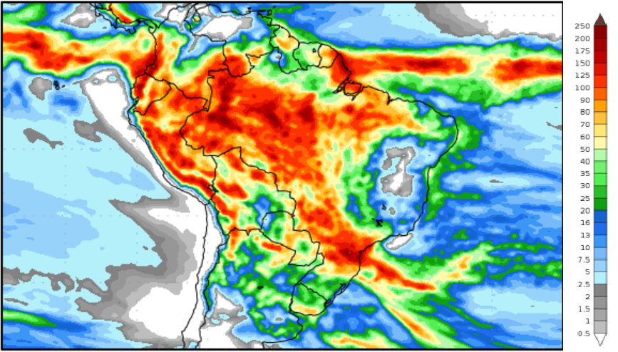 A chuva pode continuar ao longo do Brasil nas próximas semanas com redução no volume esperado à medida que se aproxima do final de janeiro. (Figura 3)