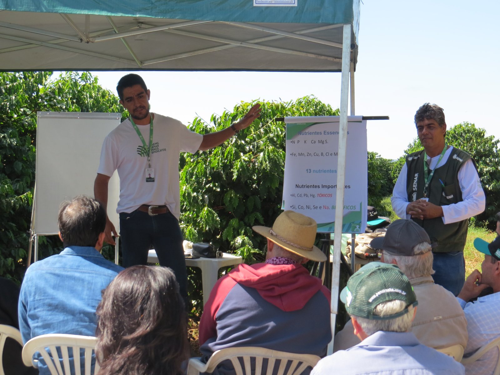 No total, a Dia de Campo foi dividido em palestra de abertura sobre mercado de café e cinco estações de campo. O gerente da EPAMIG local, Juracy de Oliveira, celebra a parceria entre a empresa e o Sistema Faemg.