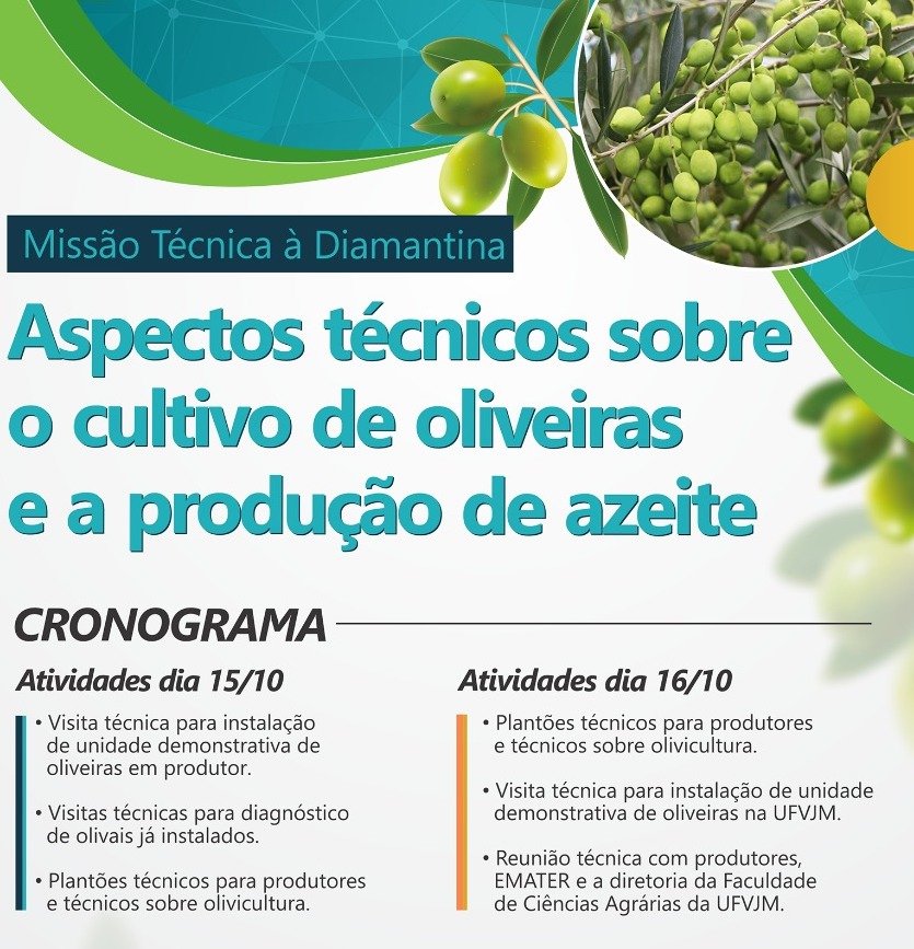 O objetivo da visita foi realizar um diagnóstico dos olivais implantados entre os anos de 2011 e 2012 em Diamantina. Apesar de estarem em idade produtiva, os olivais ainda não apresentam produção significativa. O coordenador do Programa de Pesquisa em olivicultura da EPAMIG, Luiz Fernando de Oliveira, e o pesquisador da empresa, Pedro Moura, avaliaram as plantas e elaboraram um relatório técnico que foi entregue aos produtores.
