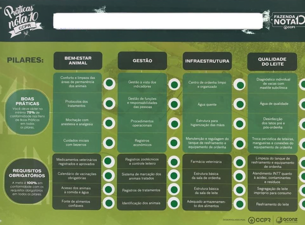 A auditoria do Campo da EPAMIG de Felixlândia foi realizada pela filial da América Latina da Quality Consultants of New Zealand (QCONZ). O Programa de Boas Práticas Agropecuárias da QCONZ atende a Instrução Normativa 77 do Ministério da Agricultura (MAPA) para melhorar a qualidade do leite cru refrigerado, reduzir o risco alimentar e fornecer proteção ao produto final.