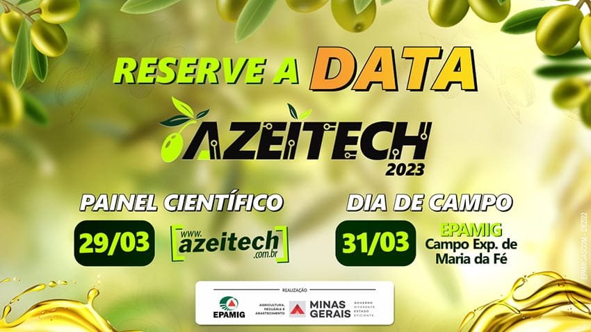 (Belo Horizonte – 10/1/2023) A Empresa de Pesquisa Agropecuária de Minas Gerais (EPAMIG) promove no próximo mês de março mais uma edição do Azeitech. O evento que vai comemorar os 15 anos da primeira extração de azeite extravirgem no país, ocorrida no Campo Experimental de Maria da Fé, contará com programação online, no dia 29 de março, e presencial, dia 31.