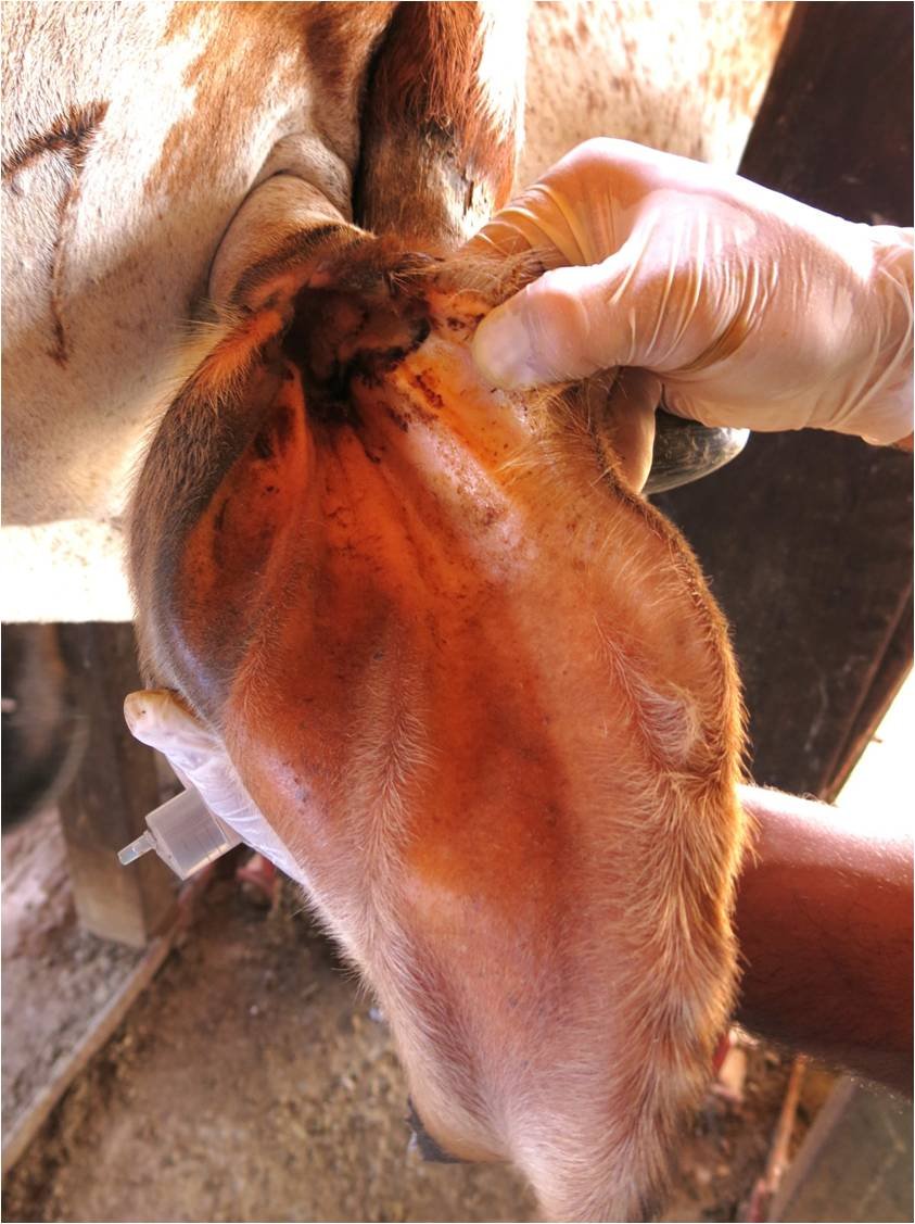 Segundo pesquisadores da Empresa, a doença está presente em cerca de 90% dos rebanhos Gir no Brasil, mas, apesar da alta prevalência, o conhecimento sobre a enfermidade ainda é muito limitado. A otite é causada pelo parasito Rhabditis spp., um nematoide que coloniza a orelha de bovinos e se alimenta, possivelmente, do cerume e de microrganismos presentes no conduto auditivo.