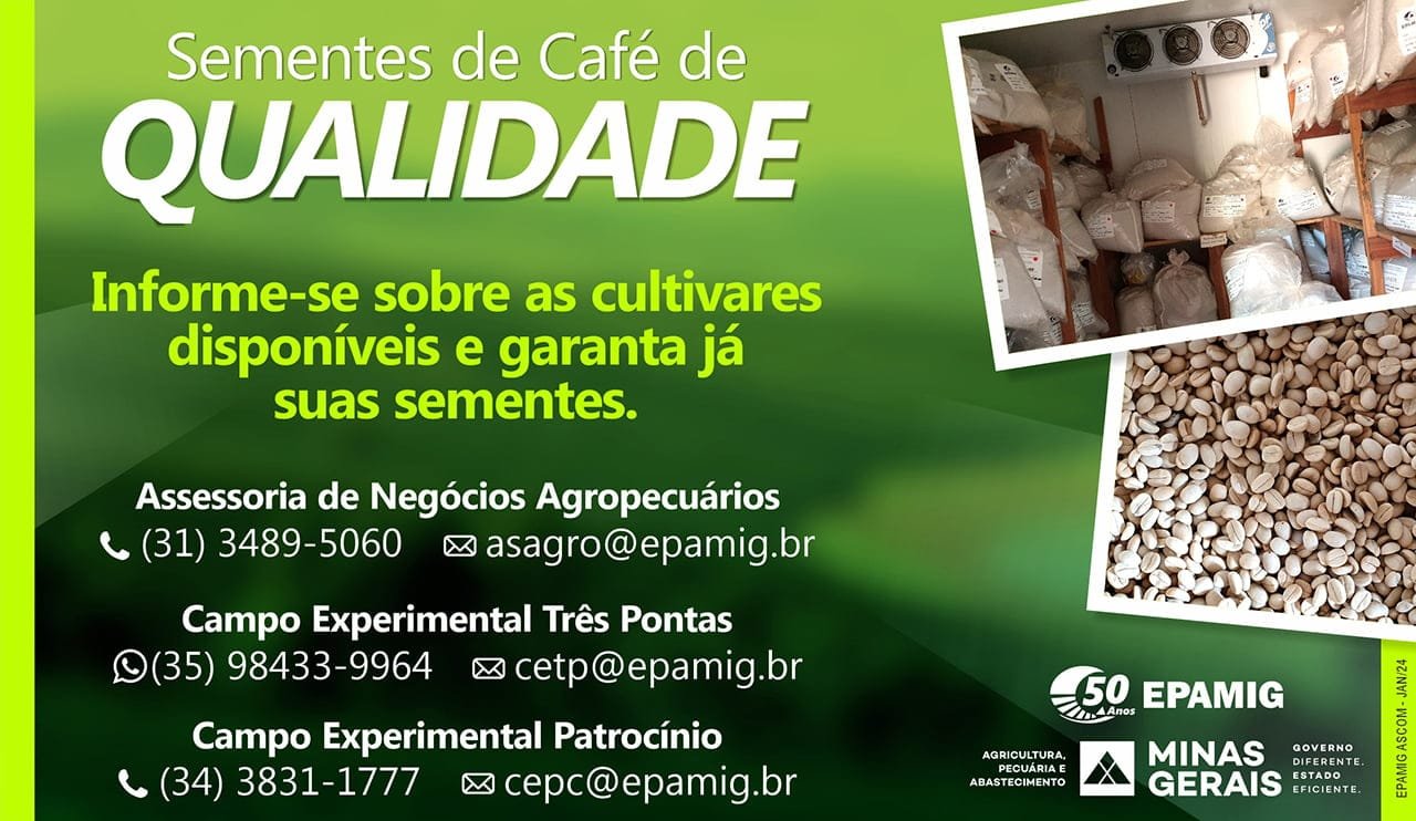 No Campo Experimental de Patrocínio, as sementes disponíveis são das cultivares Topázio MG 1190, MGS Epamig 1194, Catuaí Amarelo IAC 62, Catuaí Vermelho IAC 99, Catuaí Vermelho IAC 144 e Catiguá MG2. Os contatos do CE de Patrocínio são: (34) 3831-1777 e cepc@epamig.site.
