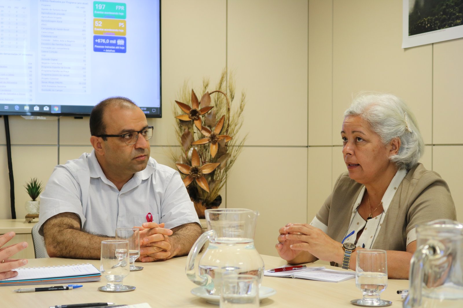 A presidente da EPAMIG, Nilda de Fátima Ferreira Soares, e a chefe da Unidade Centro Oeste, Marinalva Woods Pedrosa, foram recebidas pelo superintendente do Senar Minas, Christiano Nascif, e pelo o coordenador de Formação Profissional Rural (FPR), Luiz Ronilson Paiva, que explicaram como funciona o Programa de Assistência Técnica e Gerencial (ATeG) e como são a estrutura e o trabalho da entidade na capacitação e promoção social das famílias rurais.