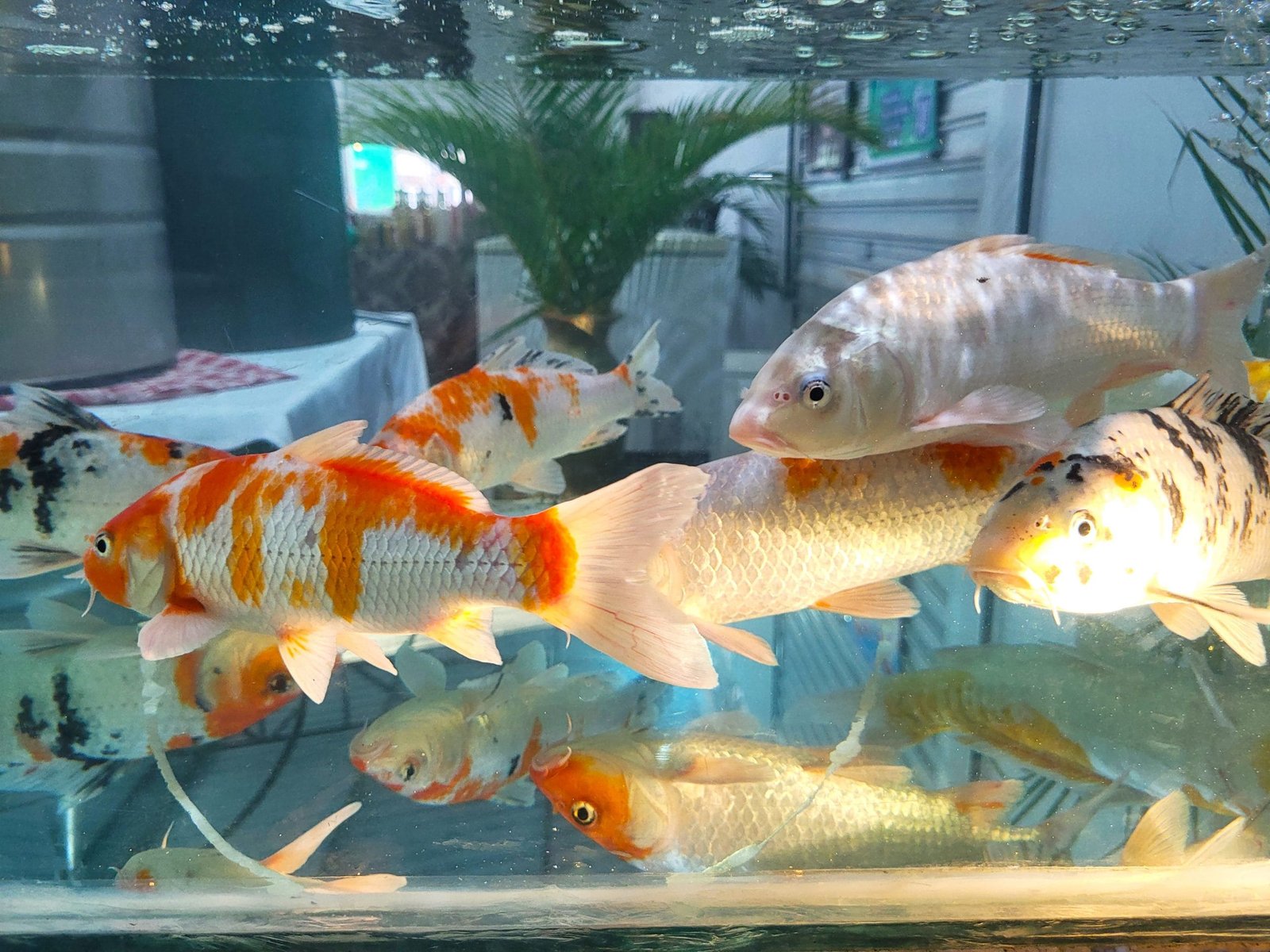 Exemplares de carpas coloridas adultas da EPAMIG. Foto: Fábio Tancredi/Epamig
