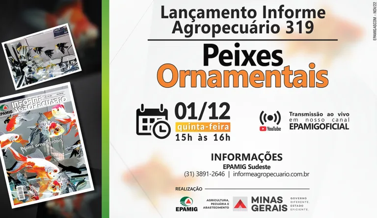 Com o objetivo de ampliar o volume de informações destinadas aos produtores, a Empresa de Pesquisa Agropecuária de Minas Gerais (EPAMIG) lança edição do Informe Agropecuário sobre Peixes ornamentais que apresenta artigos sobre diversas espécies de peixes, manejo, sanidade, entre outros. A publicação, já disponível para aquisição na Livraria EPAMIG, será tema de um debate online que acontece na quinta-feira, 1º de dezembro, às 15h, com transmissão ao vivo pelo Canal Oficial da EPAMIG no YouTube.