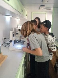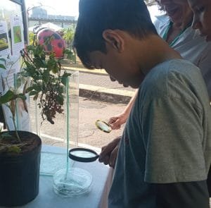 (Belo Horizonte – 24/8/2023) A Empresa de Pesquisa Agropecuária de Minas Gerais (EPAMIG) está participando da 10ª Semana Municipal de Ciência e Tecnologia de São Sebastião do Paraíso. Até esta sexta-feira, 25 de agosto, o ônibus laboratório Ciência Móvel apresentará insetos que fazem controle biológico, além de cultivares de arroz e feijão, tipos de torra e degustação de café. “Na lupa é possível ver o crisopídeo que é um inseto responsável pelo controle biológico”, conta a bolsista de Difusão de Tecnologias Jamille Silva Machado Lacerda.