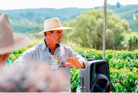 O dia de campo contou com seis estações técnicas, que abordaram temas como implantação da lavoura, conservação de solo e água, uso de drones e regularização ambiental. A EPAMIG conduziu duas estações: “Arborização no cultivo do café” foi o tema apresentado pelos pesquisadores Regis Venturin (EPAMIG) e André Dominghetti (Embrapa Café), que destacaram que esta técnica ainda é pouco utilizada na busca de mais resiliência às mudanças climáticas.
