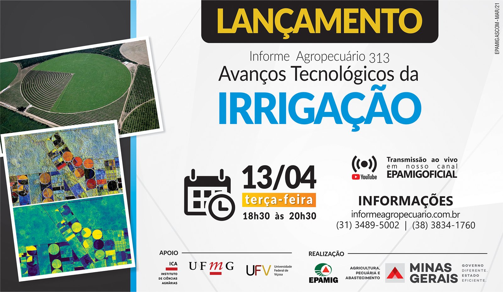 (Belo Horizonte – 9/4/2021) – A Empresa de Pesquisa Agropecuária de Minas Gerais (EPAMIG) realiza na próxima terça-feira, 13 de abril, às 18h30, um encontro online para o lançamento da nova edição do Informe Agropecuário, que aborda tema “Avanços tecnológicos na irrigação”. O evento será transmitido ao vivo pelo Canal Oficial da Empresa no Youtube.