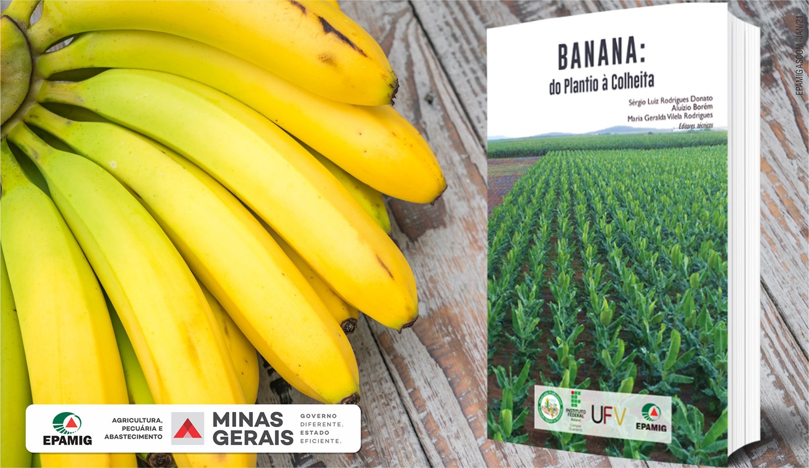 “A obra é o resultado da experiência de pessoas que são referências na cultura da banana, seja experiência científica, técnica ou de campo. O que nós editores esperamos é que essa obra seja útil e que ajude no dia a dia da condução de uma lavoura. Desejamos sucesso aos envolvidos na cadeia produtiva da banana. É tudo que a gente espera. Poder contribuir com a atividade e com as pessoas envolvidas na atividade”, enfatiza Maria Geralda que também é coordenadora do Programa de Pesquisa em fruticultura da EPAMIG.