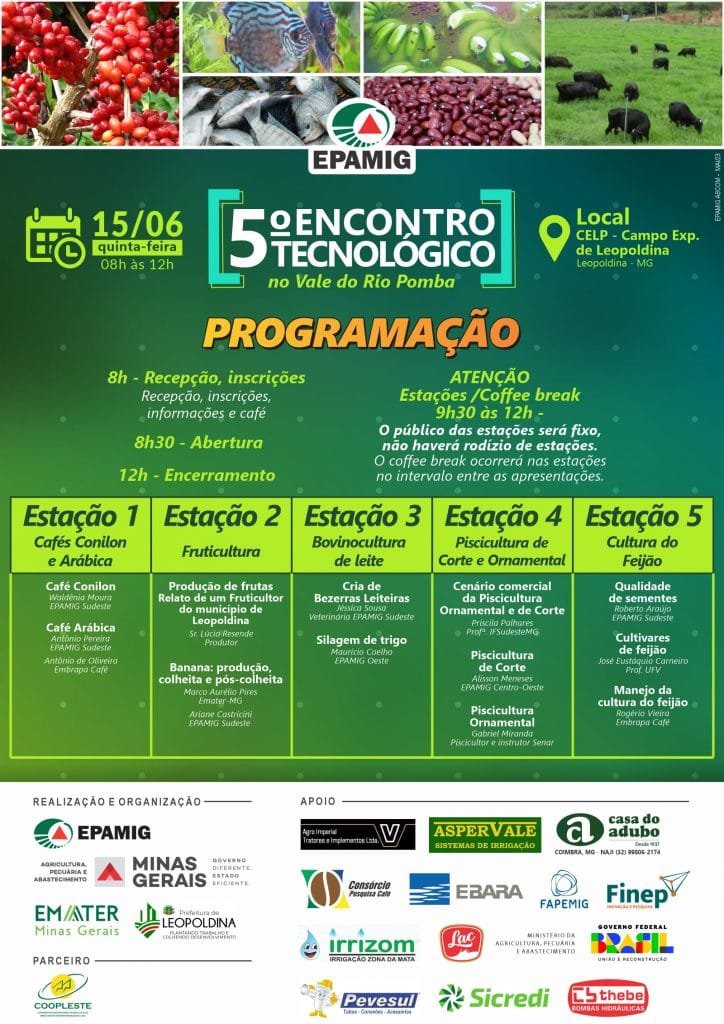 Local: Campo Experimental de Leopoldina (EPAMIG) – Estrada do Aeroporto (via Vargem Linda), Zona Rural, Leopoldina/MG, CEP: 36700-000