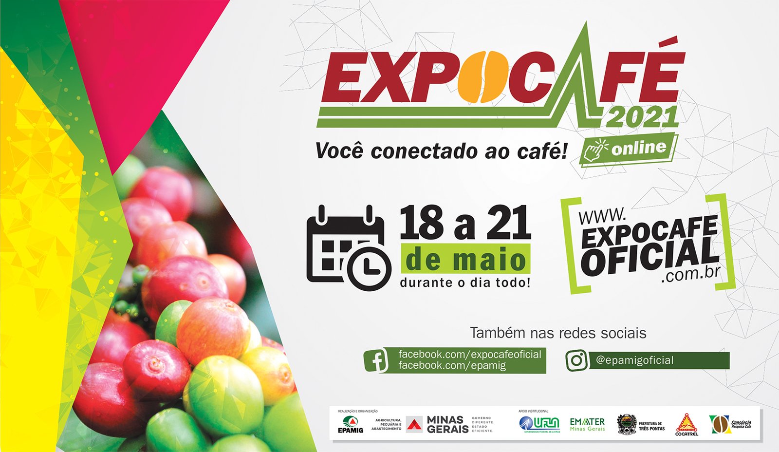 (Belo Horizonte – 19/4/2021) – A Expocafé 2021 será realizada no formato totalmente virtual. O evento, que acontece entre os dias 18 e 21 de maio, contará com programação variada, para atender a produtores, técnicos, acadêmicos, pesquisadores e profissionais que atuam em diversos segmentos da cadeia produtiva.