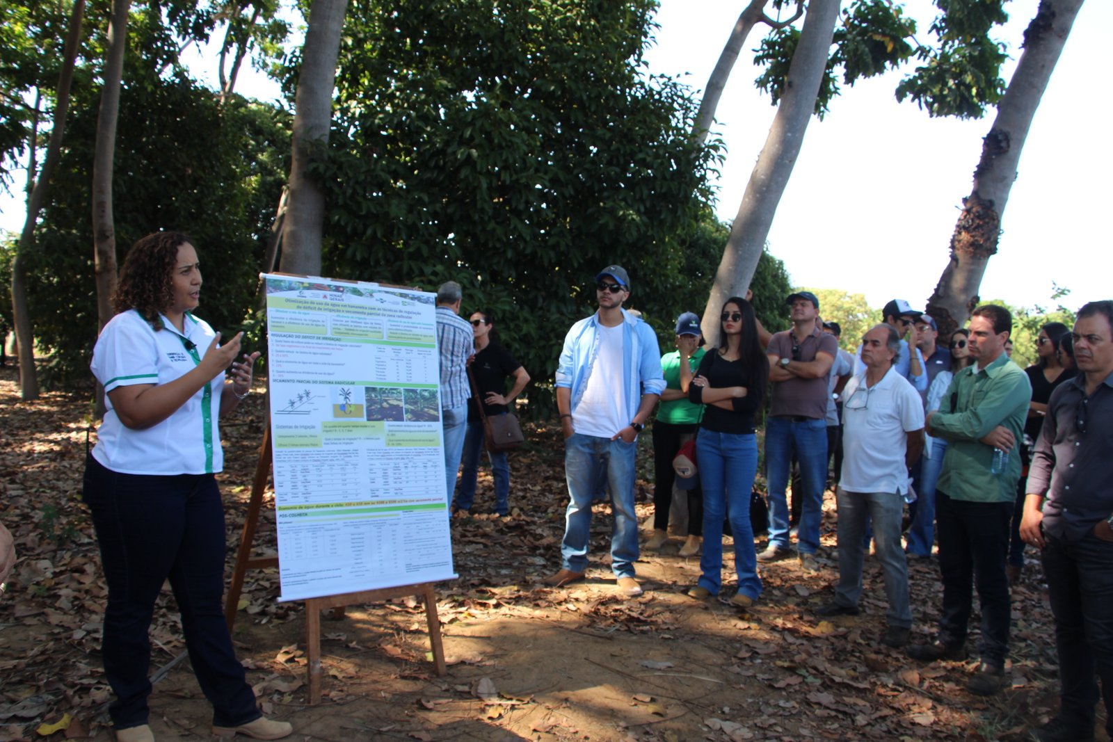 Abrindo a programação a EPAMIG sediou Dia de Campo, no Campo Experimental de Mocambinho, em Jaíba, voltado para compartilhamento de tecnologias de irrigação para a produção de banana. A chefe geral da EPAMIG Norte, pesquisadora Polyanna Oliveira, afirma que as pesquisas evoluíram bastante nessa área e que já é possível observar manutenção da produção, com qualidade e uso racional da água. “No cenário de escassez hídrica que o Norte de Minas atravessa nossas pesquisas se voltaram para a otimização na irrigação, de forma a garantir a produtividade de diversas variedades de banana, ao mesmo tempo em que se mantém a qualidade”, explica. Ainda de acordo com ela o evento foi uma grande oportunidade da EPAMIG tornar ainda mais conhecidas as suas tecnologias e mostrar as alternativas de trabalho. “Especialmente as pesquisas para redução do uso de água nas diversas fruteiras – que é um trabalho feito em parceria com outras instituições, como a Embrapa -, chegaram ao conhecimento de técnicos e produtores de todo o país”, realça.