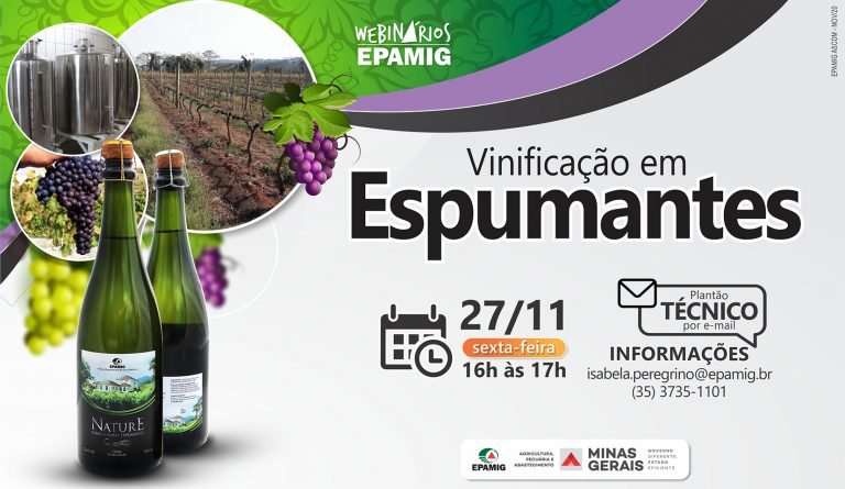 (Belo Horizonte, 20/11/2020) Vinificação em brancos e rosés é o tema do webinário sobre vitivinicultura, que a Empresa de Pesquisa Agropecuária de Minas Gerais (EPAMIG)