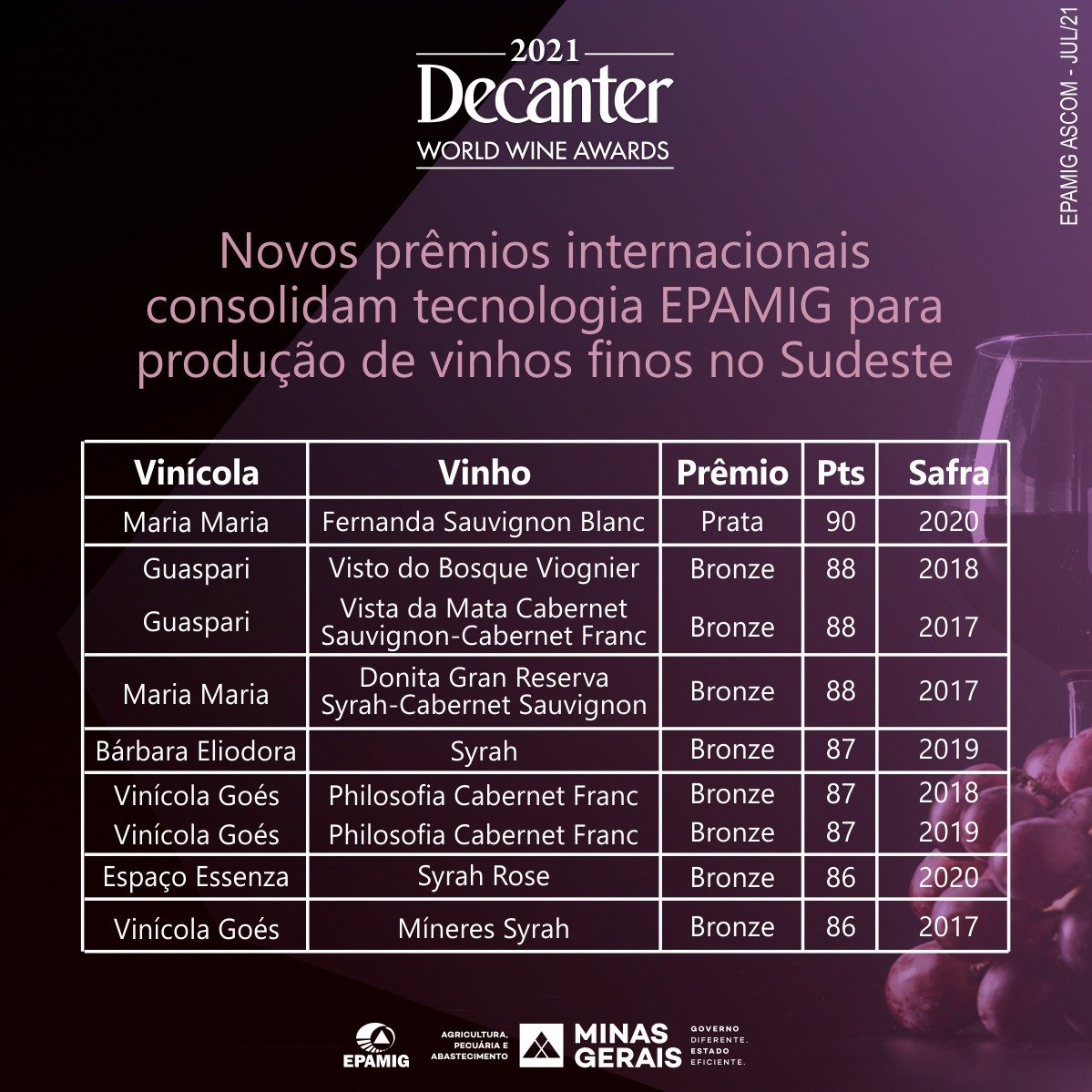 Edição 2021 do Decanter World Wine Awards premiou vinhos de Minas Gerais e São Paulo com medalhas de prata e bronze