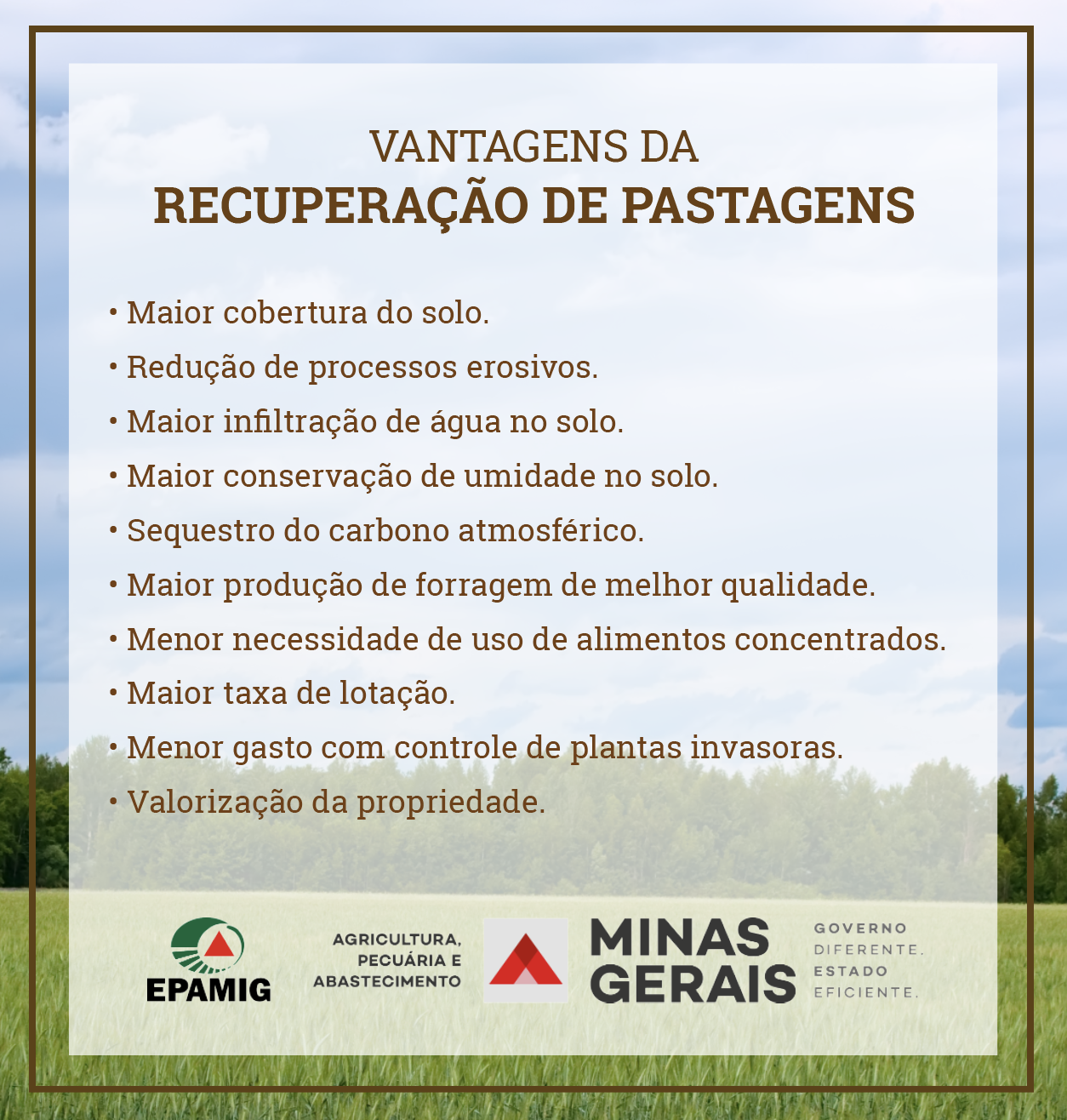 De acordo com o pesquisador da Empresa de Pesquisa Agropecuária de Minas Gerais (EPAMIG), Sidnei Lopes, por estar localizado em uma região tropical, o Brasil apresenta potencial elevado para produção de biomassa vegetal, o que favorece a exploração de bovinos em pastejo. Segundo dados do Instituto Brasileiro de Geografia e Estatística (IBGE) de 2019, só em Minas são mais de 25 milhões de hectares de pastagens, cerca de 30% do território do estado.