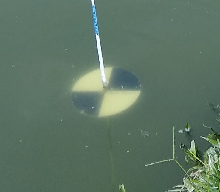 “A proliferação excessiva de algas pode causar quedas nos níveis de oxigênio dissolvido no período noturno, já que esses grupos vegetais também respiram na ausência de luz solar. Para viveiros escavados, a transparência ideal está entre 30 e 50 centímetros e pode ser medida por um instrumento simples chamado disco de Secchi”, ensina Giovanni.