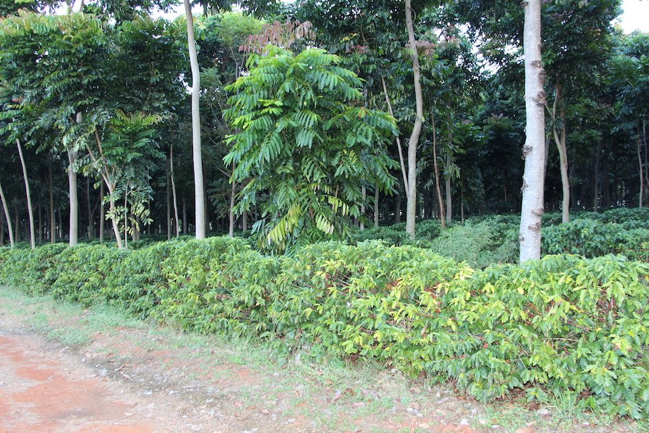 A segunda alternativa é que nas áreas mais sujeitas à geada e a temperaturas menores deve-se pensar na arborização das lavouras de forma sistemática por meio do plantio de linhas de cafeeiros intercalados com linhas de árvores. Com a colheita mecanizada, a arborização distribuída por toda a lavoura é dificultada, mas nada impede que em distâncias determinadas conforme o local de plantio e orografia da área, se plante linhas de árvores. Essas árvores ajudarão a proteger as lavouras das geadas por auxiliarem na manutenção da temperatura mais alta em noites de frio, servirão de quebra vento, amenizarão extremos de temperatura alta e insolação, contribuirão para a diversificação biológica, ciclagem de nutrientes, sequestro de carbono, além de poder gerar lucro extra quando manejadas para esse fim pelo plantio de espécies específicas. Além disso, promovem o aumento de produtividade em áreas mais frias, mesmo sem a ocorrência de geada. No Paraná, o uso de feijão guandu ou de tremoço nas entrelinhas já foi usado com sucesso, em lavouras novas plantadas em locais de risco.