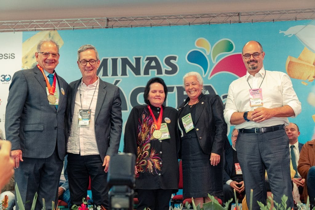 O Minas Láctea também homenageou pesquisadores que contribuem para o desenvolvimento da indústria brasileira de laticínios com a entrega da Medalha Cândido Tostes aos ex-alunos e professores do Instituto Cândido Tostes Luiza Albuquerque e Claudio Furtado.